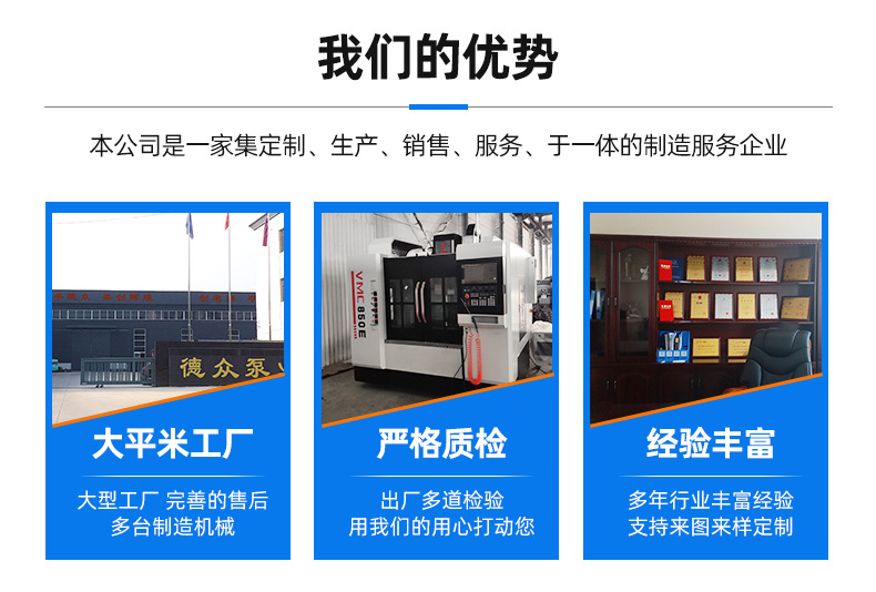 河北德眾泵業有限公司座落于久聞盛名的河北鑄造之鄉泊頭,公司占地面積23590平方米,是國內集研制、開發、生產、銷售、服務于一體的容積泵專業生產廠家,主導產品:齒輪泵、螺桿泵、高粘度泵、無泄漏磁力齒輪泵、夾套計量泵、高真空齒輪泵、轉子泵、自吸式離心油泵、風冷式熱油泵等工業泵產品。通過不懈地努力,依靠先進的技術,可靠的產品性能,精良的品質和優質的服務贏得了廣大客戶的認可和市場信譽,同時為中國石油能源一號網絡成員單位。